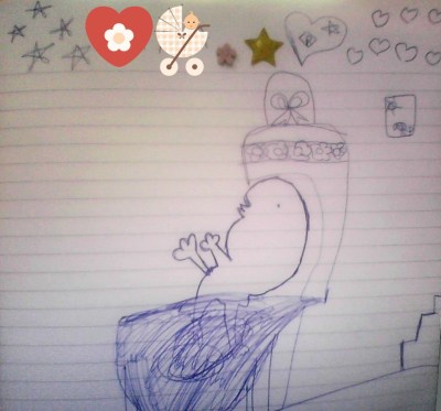 E’ sana, va tutto perfettamente bene, noi siamo strafelici. La sista ha gia’ detto che e’ uguale a papi, e La Princi ne ha fatto un ritratto. E’ incredibile, l’ha vista due secondi sull’ecografia e l’ha riprodotta cosi’: