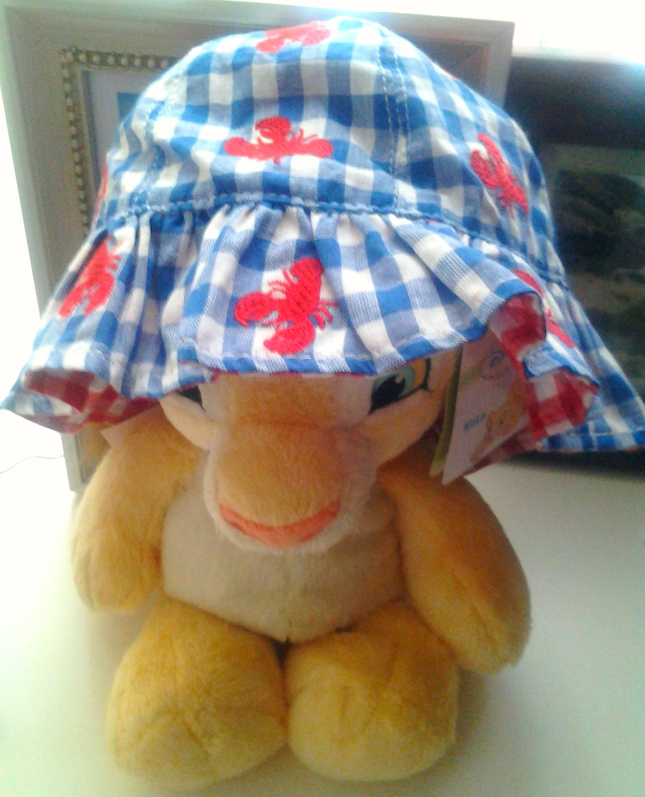 Ma non e’ meraviglioso?? Con le piccole aragostine e double-face (l’altro lato e’ a quadrettini vichy rossi e bianchi). E ogni volta ci stupiamo di quanto siano piccole le cose per i neonati, anche se per questa scelta mi ero tenuta un po’ piu’ larga, e’ 0-6, e sara’ perfetto per il sole miamense. Mi piace pensare che lei, che ha vissuto tra Messico e Cuba, abbia pensato al feroce sole caraibico che scotta anche d’inverno.