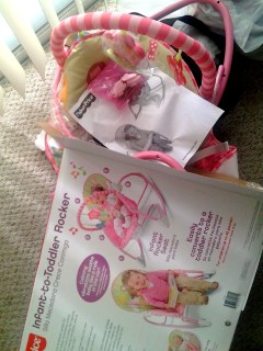 Solo che, zia, non l’ho mica montata la sdraietta. E’ tutta un coso da avvitare, e incastrare, che in questa casa piccina poi mi tocca rismontarla, e allora la vedrai quando sara’ piena, come tu stessa hai chiesto. E’ bellissima pero’, piena di colori e con la vibrazione che simula i movimenti della macchina O.O