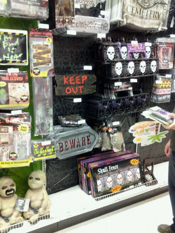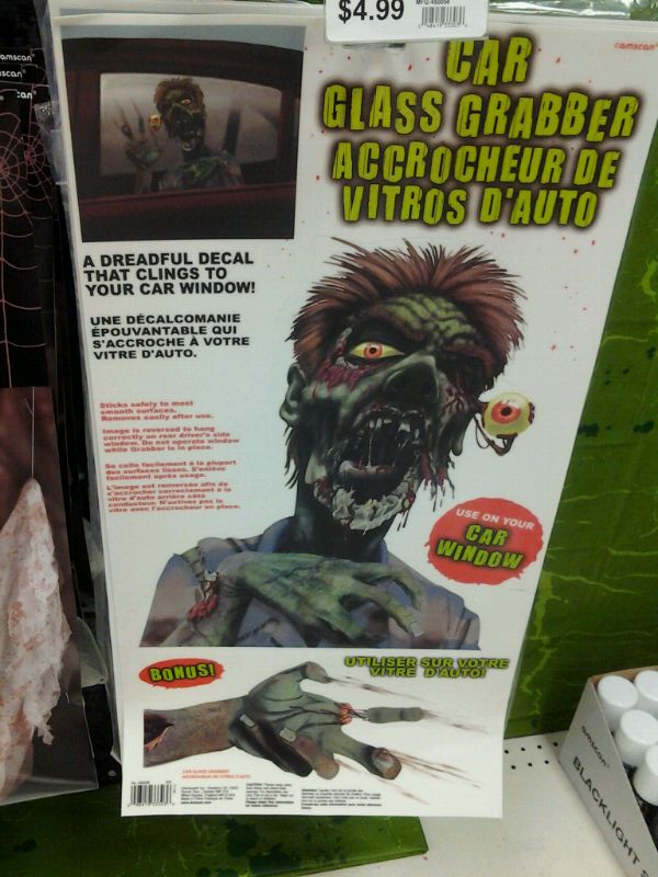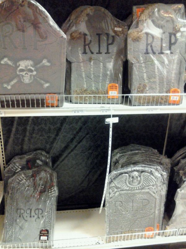 A proposito di giornate dell’orrore, questo mio primo Halloween in terra americana si preannuncia divertente. I negozi sono in festa, le riviste piene di decorazioni, le macchine in giro hanno le corna – o altro – attaccate sul tettuccio (e tra un mese arriveranno queste), i programmi in tv sui dolcetti da brivido si moltiplicano, in tutti i giardini sono appesi fantasmi agli alberi, ragni giganti sui cancelli (tranne chi se li trova veri in casa, vero Marica??) e bare a terra.