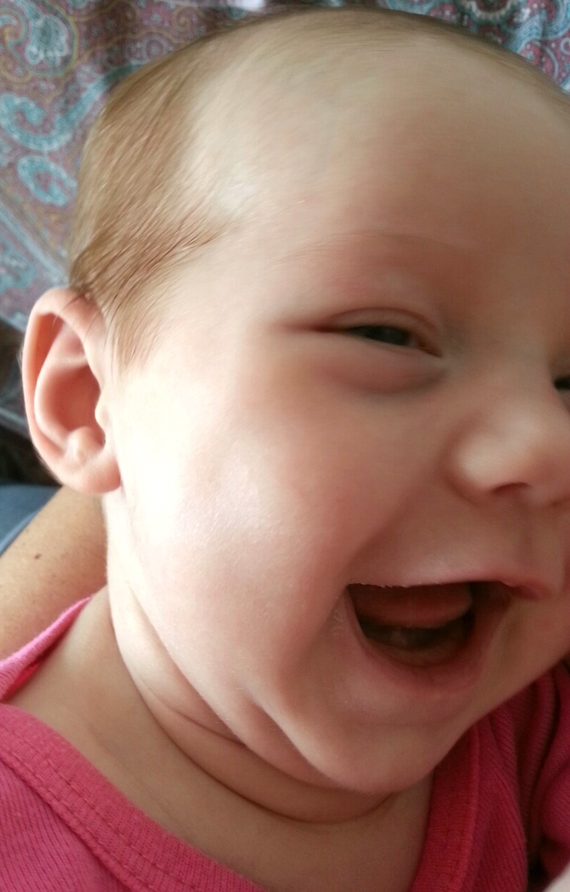 Ride, e tanto. Sorride a tutti, pure ai muri. Si sveglia felice, e vederla cosi’ allegra e’ una cosa meravigliosa, mi riempie il cuore. E continua a non piangere praticamente mai, solo quando ha fame fame fame, altrimenti sono solo LLe. E sorride tantissimo quando le dico certe cose, tipo Ciao! oppure Daavveeerooo? detti in una certa intonazione. A volte “risponde” ed io rinforzo le sue risposte rispondendole a mia volta. Anche laPrinci adorava il mio Daaavvveeeerooooo?, tanto che poi quando inizio’ a parlare bene divento’ uno dei nostri scambi piu’ frequenti, anche per telefono.
