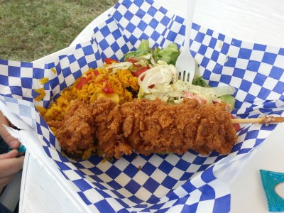 e alligatore allo stecco. Qui in Florida e’ un piatto tipico. Non lo avevo mai mangiato, ed e’ buonissimo.