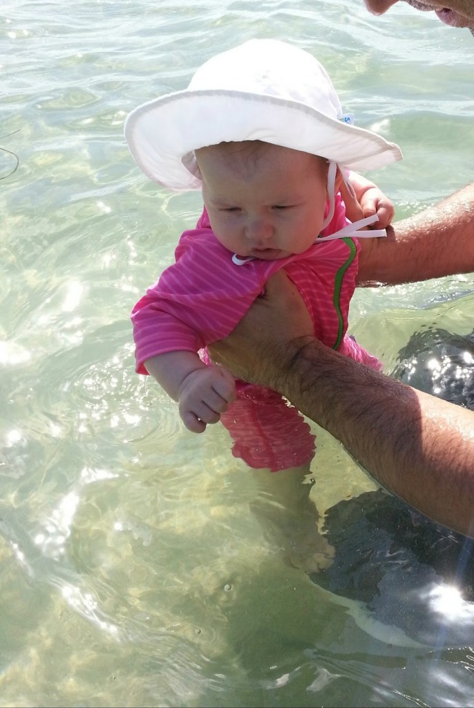 Abbiamo avuto un po’ di tregua dalle piogge che arrivano improvvise, e per due giorni il sole ci ha baciati. Terminate le commissioni di turno, ieri abbiamo deciso di portare la piccola per il suo primo bagno al mare.