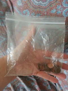 Non una cosa enorme, insomma. Qui si usa sempre la carta di credito anche per le spese minuscole da due dollari, quindi e’ davvero raro poter riutilizzare le monete che ci vengono restituite dalle rare spese cash. Di solito tengo da parte solo i quarter dollar, i 25c, che usiamo per i parcheggi o alle vending machines del College.