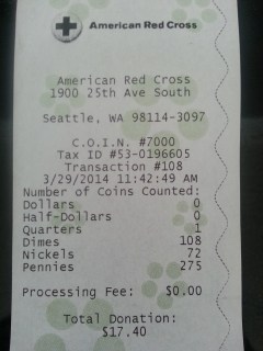 Anche noi lo abbiamo fatto alla macchinetta del grocery store…e anche noi abbiamo donato per volonta' del tecnico, io li avrei spesi nella spesa (shame on me)