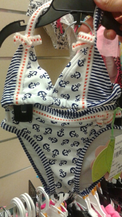 You spotted a gap in the market! Se tutte vi lamentate che mon si trovano i costumi adatti e carini forse potresti crearli tu! No va be’ era un’ idea, me ne vengono un sacco di queste idee malsane da quando vivo qui…comunque il costume e’ molto carino, adoro il rosa e si addice ad una bella biondina. Pero’ anche quello con le ancore blu mi piaceva.