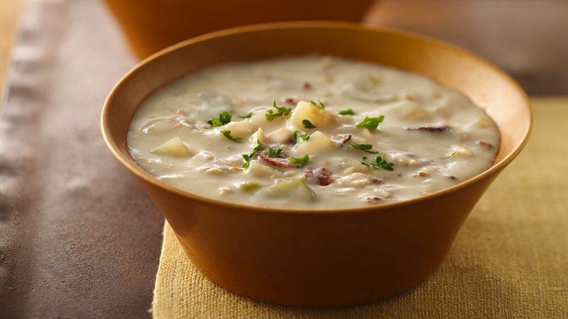 La clam chowder e’ forse la zuppa americana piu’ famosa. Viene dal New England ed e’ fatta con le vongole, il bacon, la panna. Ed e’ strabuona.