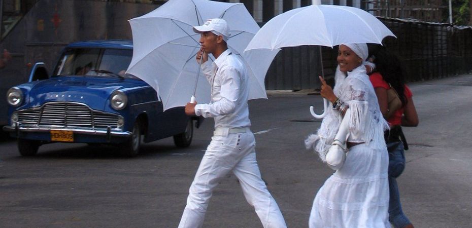 Se siete persone attente, o se avete sposato un/una cubana che ve ne ha parlato, avrete visto in giro per la citta’ in America donne (di solito) vestite completamente di bianco, blusa, gonna, calze, scarpe, ombrello compreso, con i capelli raccolti in una cuffia anch’essa bianca. Avete incontrato una Santera o una iyabó, una donna che pratica la Santeria.
