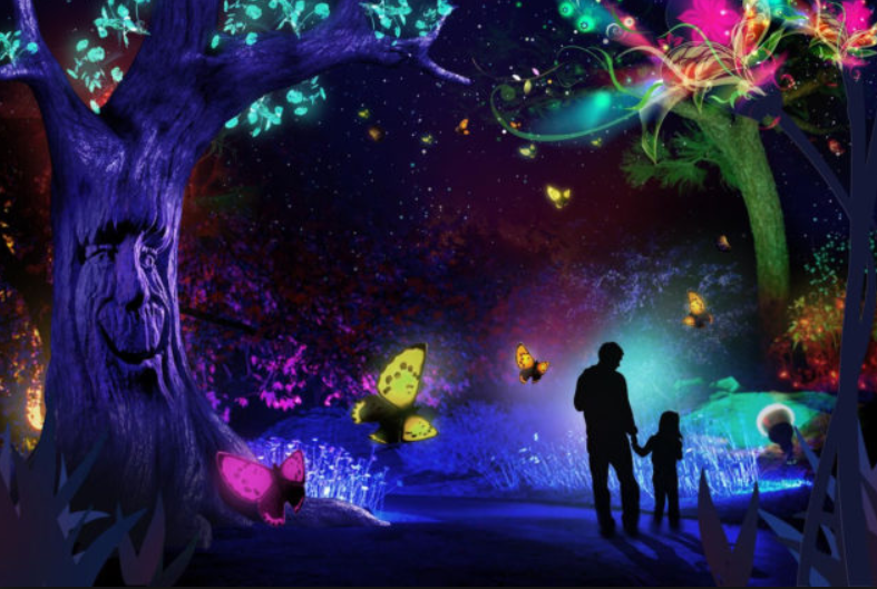 Una nuova iniziativa del Fairchild Tropical Garden, Night Garden (lo stesso della foto in anteprima) con la Enchanted Forest, l’albero parlante, le fatine che volano. Fino al 6 gennaio.