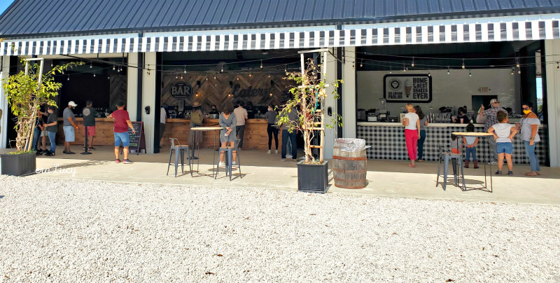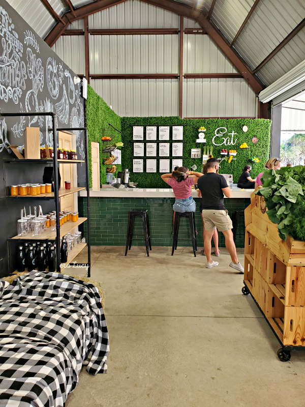 Ora ci sono tre punti ristoro, per fare brunch o un pasto completo, o solo il bar. Ci sono gelati e shakes, molto buoni. Si possono acquistare verdure a buon prezzo, oltre a quello che riuscite a raccogliere.
