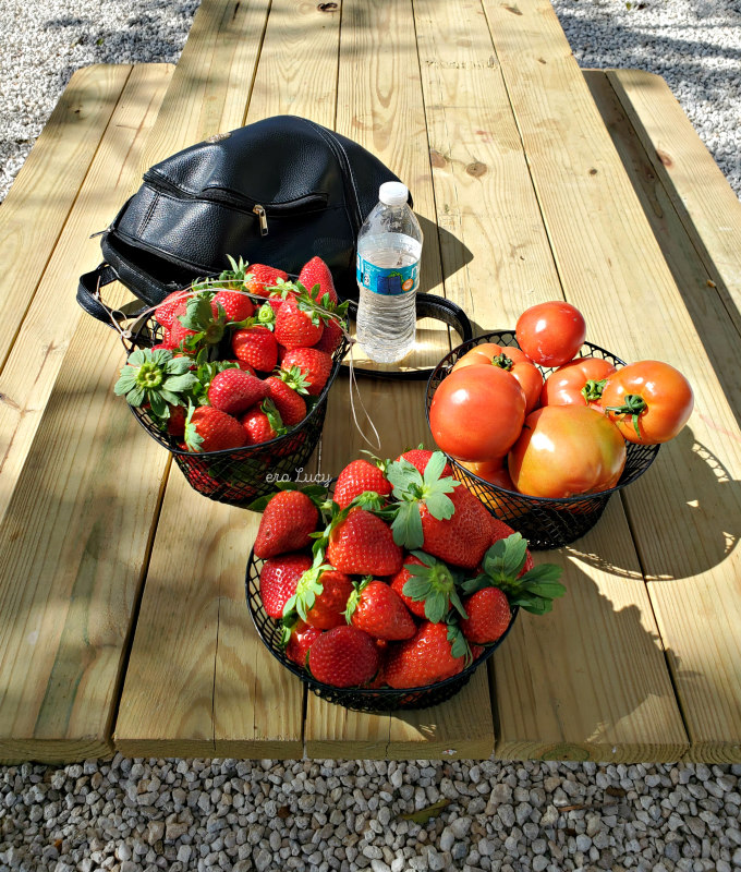 A the Berry Farm si va principalmente per raccogliere fragole, ma si trovano anche pomodori, peperoni, meloni, e angurie. Il campo e’ enorme, bellissimo, con filari di girasole ai lati.