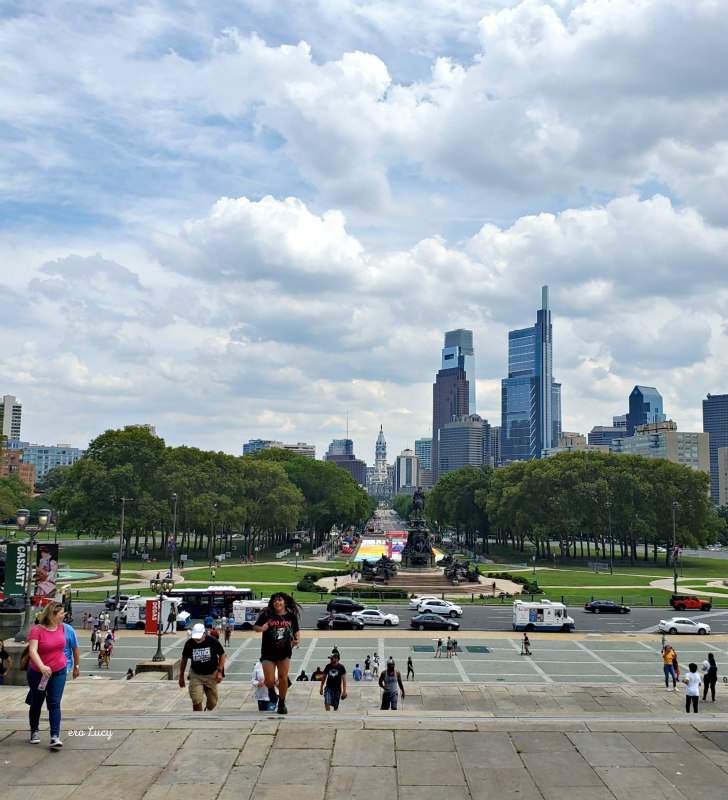Le Rocky Steps sono in realta’ le scale che portano al museum of art di Philly. LaPicci, gasatissima dal video di Rocky che le ho mostrato mentre cercavamo parcheggio, vuole correrle fino in cima ed io la seguo senza farmelo dire due volte!