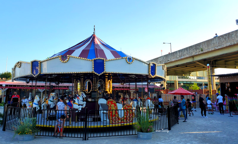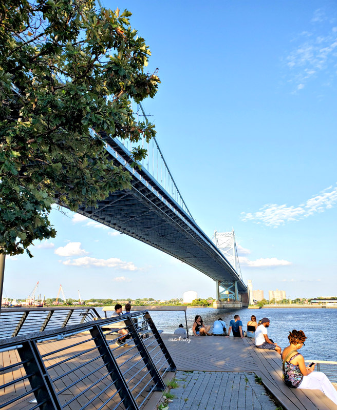 Siamo decisi a dare alla Picci la sua dose quotidiana di gioco a scapito della visita minuziosa. Se si viaggia con i bambini e’ fondamentale destinare una tappa che sia a loro misura. Capitiamo a Penn’s Landing, sul fiume Delaware, a cui si arriva anche da questo bellissimo ponte e dove ci sono delle giostre ed il minigolf.