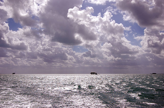 Si dice che il fascino di Stiltville sia nella sua evanescenza, prossima a scomparire, immersa nel blu dell’Oceano.