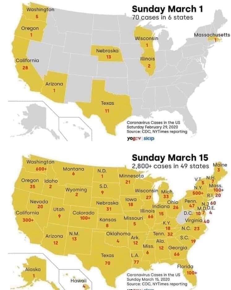 Il giorno dopo che il Presidente ha definito il COVID-19 una bufala, si è ordinata la chiusura delle scuole da New York a Miami, in un tardo, attesissimo venerdi’ 13. A partire da quel momento, gli Stati Uniti non sono piu’ stati gli stessi. Noi italiani, come gia’ detto, assistiamo impotenti a scene gia’ viste. Il nostro unico vantaggio e’ la enorme, precisa consapevolezza di dover chiuderci in casa.