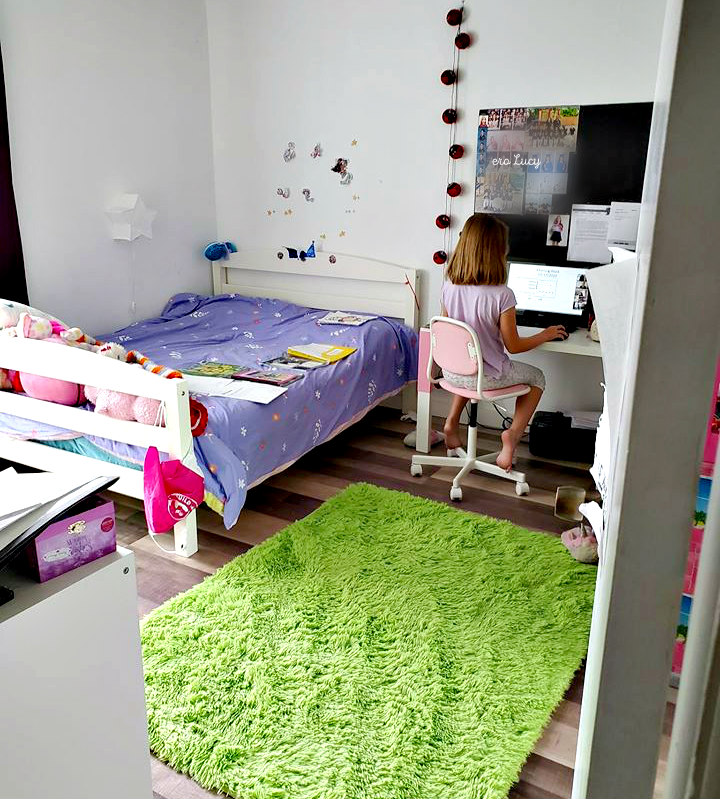 Mia figlia ha la sua prima lezione online via zoom. La maestra e’ bravissima! Le lezioni durano 3 ore, dalle 9 alle 12. Per me una salvata, visto che devo lavorare… anche se la mia piccola si affaccia ogni 5 minuti per chiedermi qualcosa 🙂