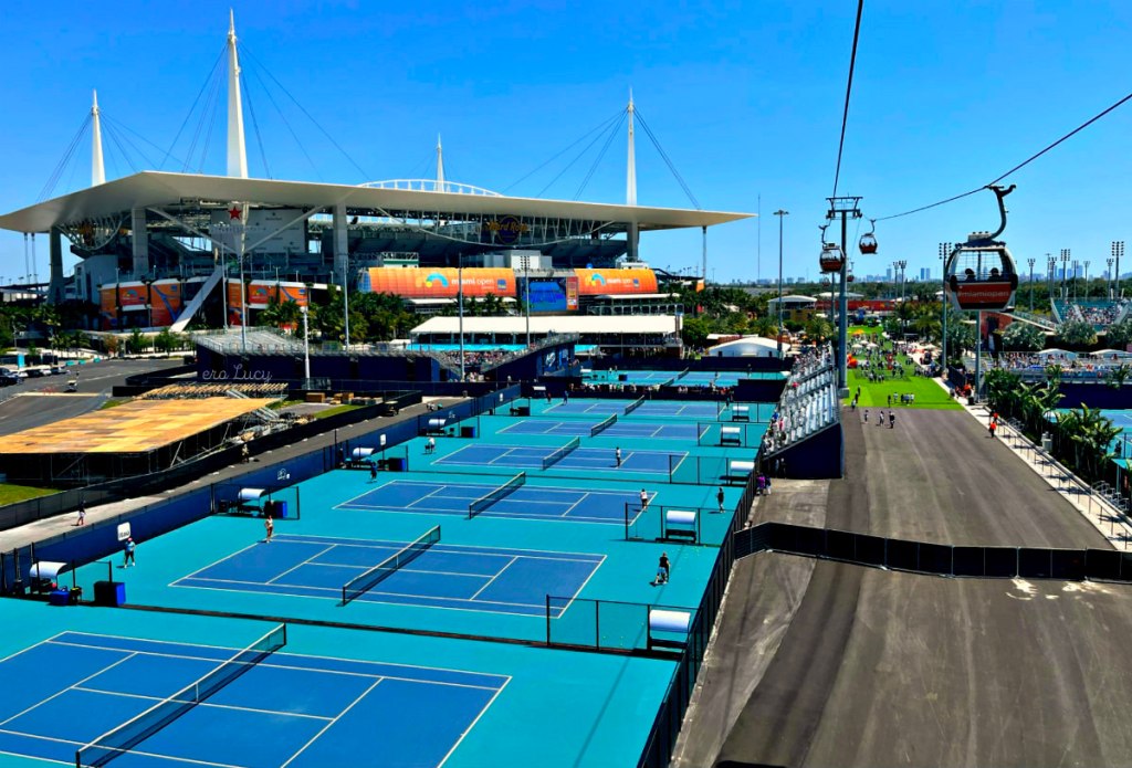 Il torneo di tennis Miami Open ha lasciato la meravigliosa cornice del Crandon Park Tennis Center in Key Biscayne nel 2019 e si e’ trasferito nel nuovissimo Hard Rock Stadium, con capacità e offerta decisamente superiori. Questo e’ lo stadio dei team di football dei Miami Dolphins e dei Miami Hurricanes, qui si tengono anche i piu’ grandi concerti, e il Miami Grand Prix di Formula 1. Quindi si tratta di uno spazio enorme, con tanta disponibilità di parcheggi, ma soprattutto con tantissimi servizi a disposizione.