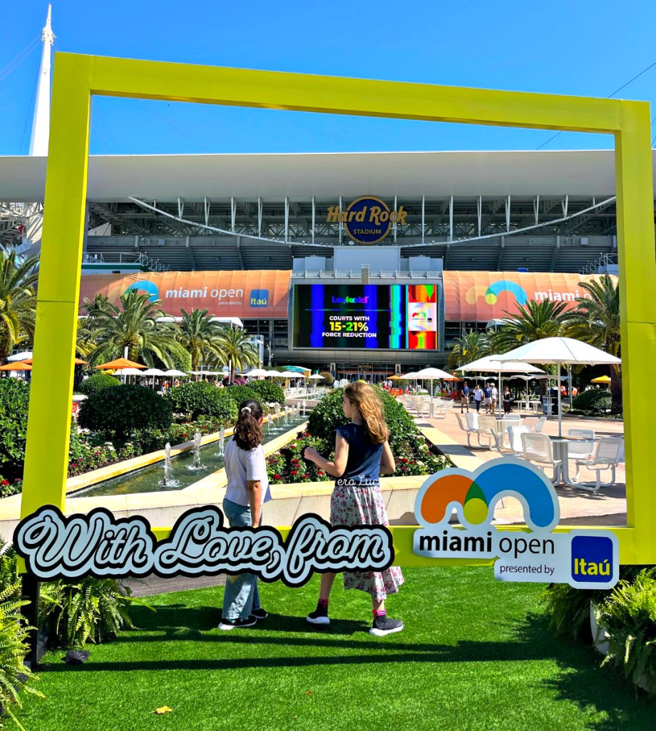 Seguo il tennis da molti anni ma mai avevo avuto l’occasione di assistere ad una partita a Miami. Vuoi perche’ prima laPicci era piccola e sarebbe stato difficile portarla con me, vuoi perche’ per un bambino il solo tennis match è decisamente noioso, e fin quando Miami Open si disputava a Key Biscayne non c’era molta altra offerta. Da quando invece il torneo è stato spostato all’Hard Rock Stadium, nel 2019, è diventato un vero spettacolo!
